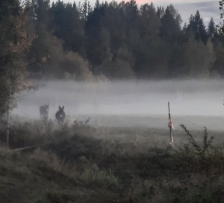 - Дома в лесу с панорамными окнами и видом на лошадей