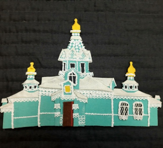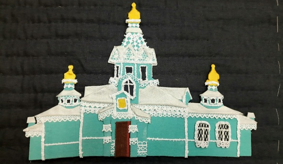 Символы Сиверского поселения - Лялин Луг и Храм апостолов Петра и Павла. В создании символов приняли участие Екатерина Хлупина и Елена Эскелинен. Екатерина выполнила картину из шерсти "Лялин Луг", а Елена, в технике лоскутное панно, Храм Петра и Павла.