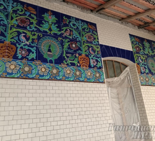 Новый владелец усадьбы восстанавливает все, включая майолику, которую обнаружили, когда вскрывали полы. Реставрационная организация, сотрудничающая с самим Эрмитажем, по найденным черепкам восстановила вид этой майолики. Часть изразцов под карнизом сохранилась, а половину пришлось восстанавливать. Она была в ужасном состоянии: по изразцам стреляли, часть из них полопалась во время пожара. Евгений Владимирович нашел специалистов – это Владимир Шульга и дизайнер по керамике Елена Шульга, которые из осколков восстановили изразцы и определили, что они принадлежат к ярославской школе. По черепкам был сделан эскиз и потом воссозданы изразцы – фактурные, трехмерные. Процедура формования очень долгая – 18 слоев разной краски, и каждый слой надо обжигать, а потом еще глазуровать. Последние элементы привезли уже в конце ноября.