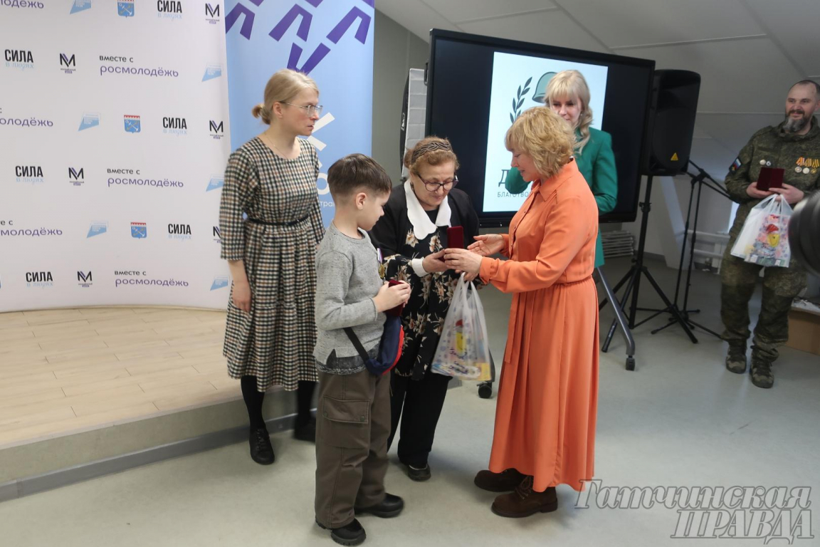 Праздничный день завершился церемонией награждения детей участников СВО памятными знаками.