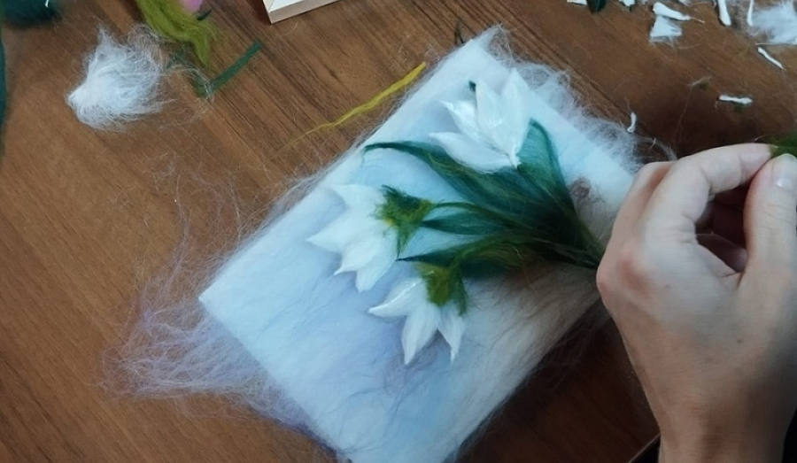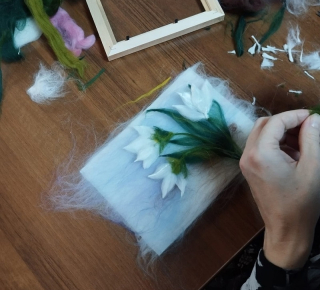 Валяние войлока - трудоемкая работа, так как сам процесс занимает много времени, а работа осуществляется вручную. На мастер-классе участники познакомились с новой техникой изготовления картин из шерсти, узнали, как правильно выбирать материал, какие цвета использовать, как правильно делать тени на картине и наглядно увидели, как можно сделать красивый подарок из шерсти своими руками.