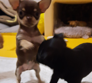Очень красивые щенки чихуахуа ,от молодых ,здоровых ,экстерьерных родителей .Мама РКФ ,Папа СКОР.Оба родителя компактные ,по 2.6 кг Три кобеля (шоколадный аристократ,палевый лисенок и черный бандит ) по 20000. Крошка шоколадно подпалая девочка - эксклюзив 45000 .Щенки полностью готовы к переезду ,приучены к пеленке ,самостоятельно кушают, первая прививка сделана .Полный комплект документов прилагается . Дата рождения 20.10.23.