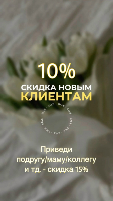 Новые в гостях - платите меньше: для всех новых клиентов действует скидка 10% на любые услуги салона.